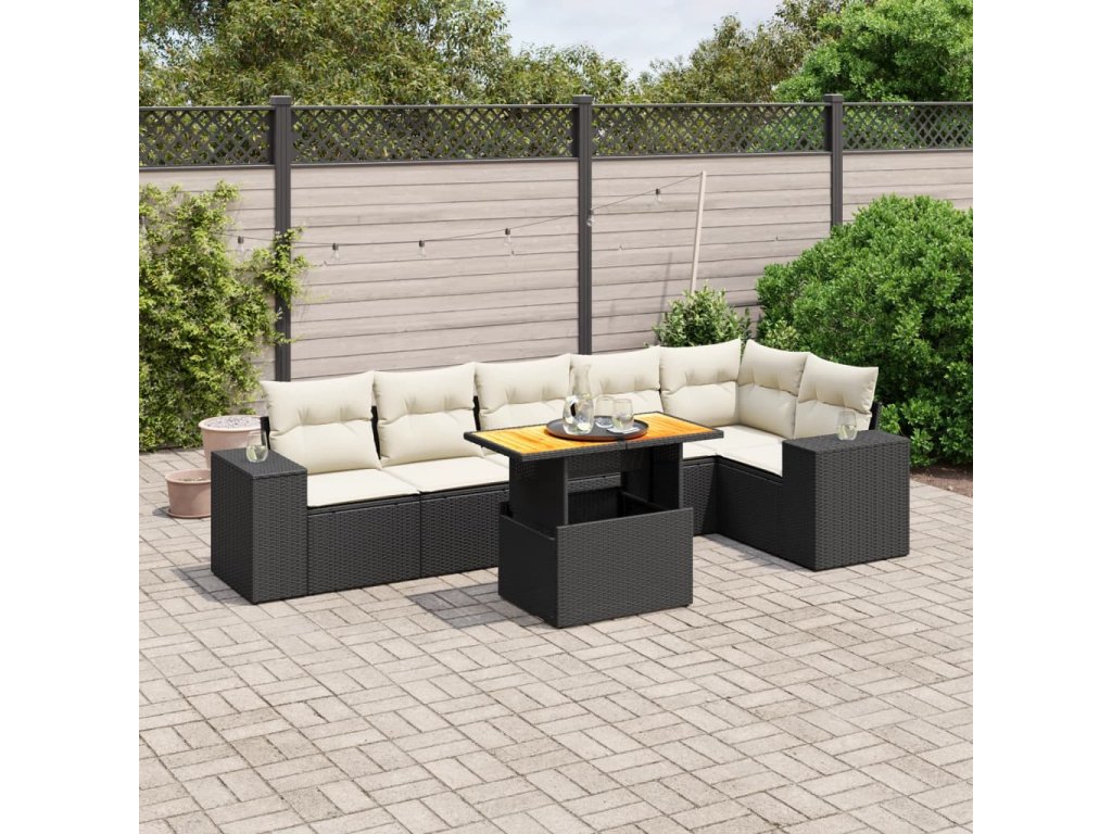 vidaXL 7-dielna záhradná súprava pohoviek s vankúšmi čierna polyratan