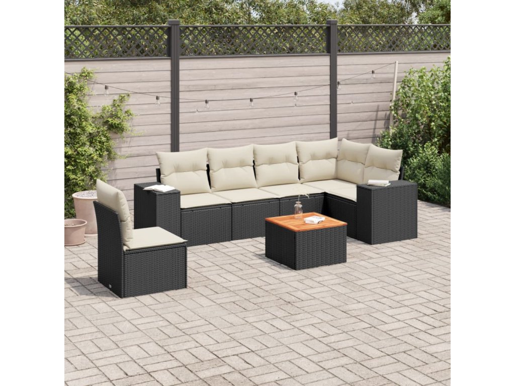 vidaXL 7-dielna záhradná súprava pohoviek s vankúšmi čierna polyratan