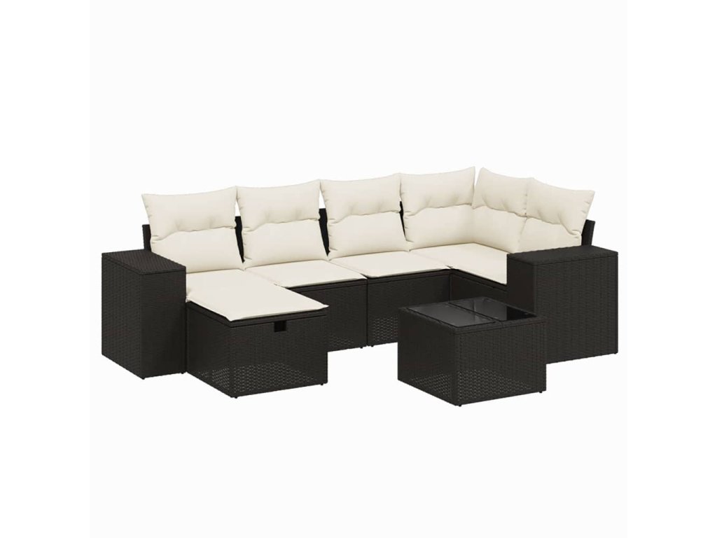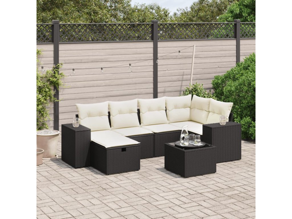 vidaXL 7-dielna záhradná súprava pohoviek s vankúšmi čierna polyratan