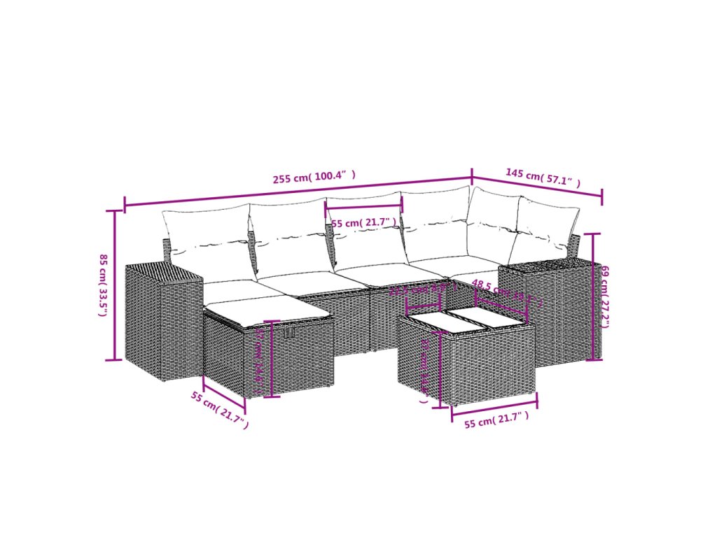 - Modulárny dizajn: Táto súprava vonkajšieho nábytku má modulárny dizajn, vďaka čomu je úplne flexibilná a ľahko sa premiestňuje, takže si môžete vytvoriť prispôsobené usporiadanie vonkajšieho nábytku.