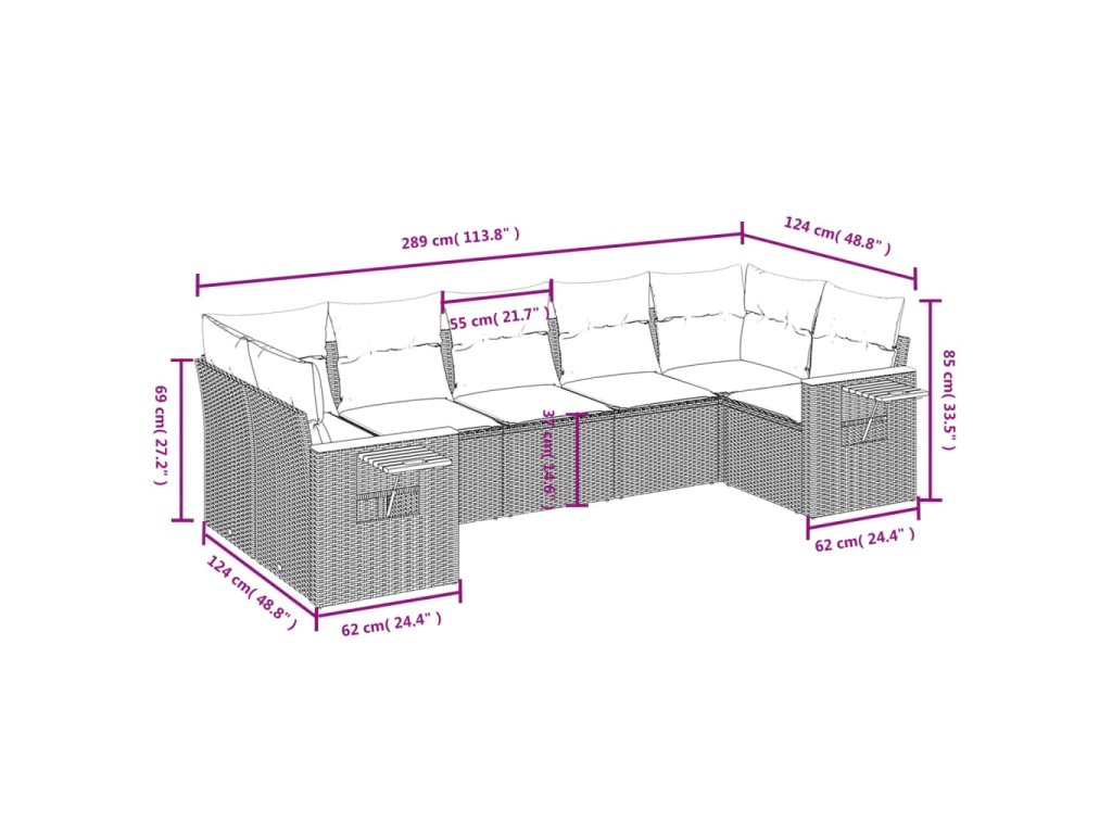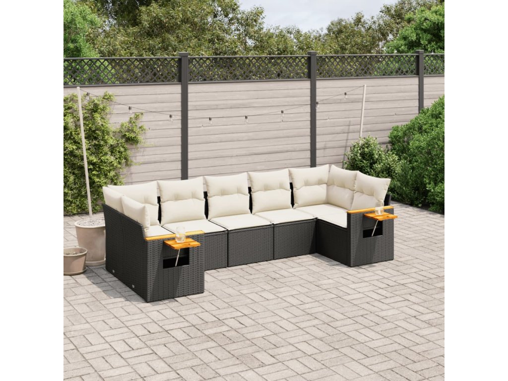 vidaXL 7-dielna záhradná súprava pohoviek s vankúšmi čierna polyratan