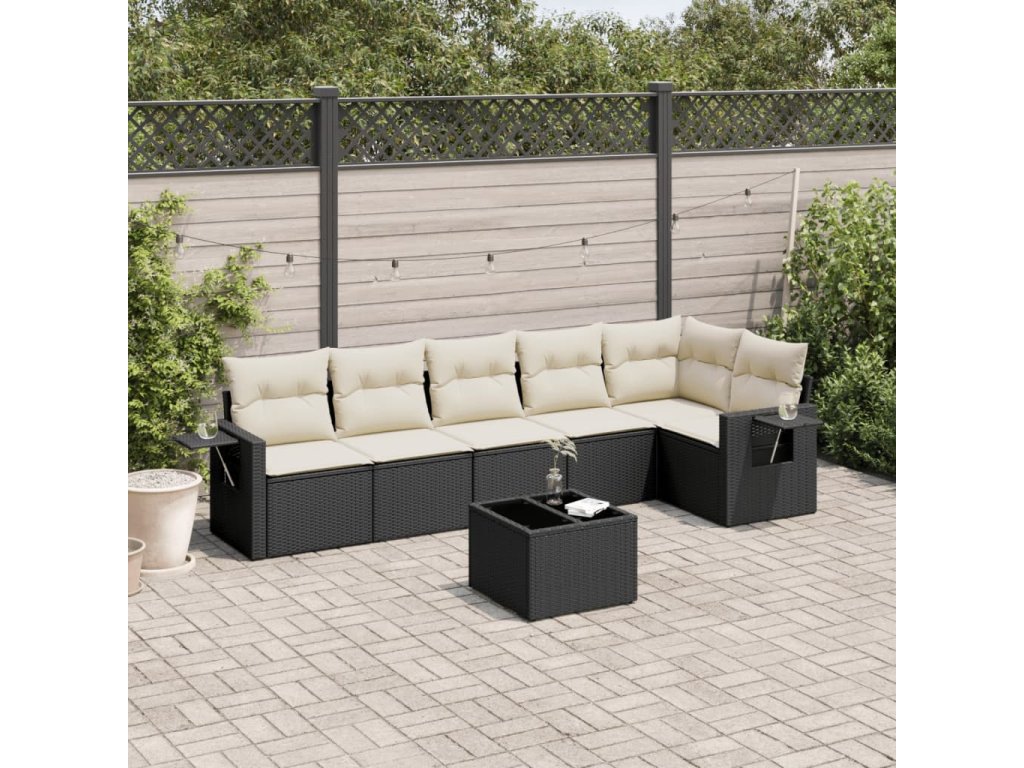 vidaXL 7-dielna záhradná súprava pohoviek s vankúšmi čierna polyratan