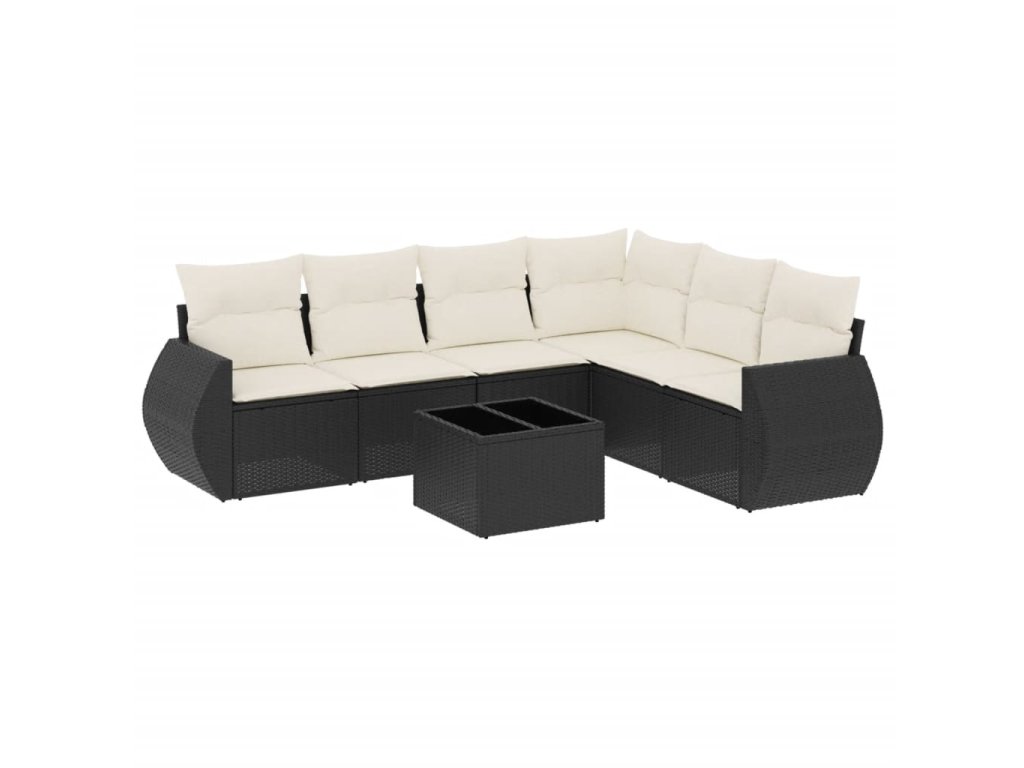 vidaXL 7-dielna záhradná súprava pohoviek s vankúšmi čierna polyratan