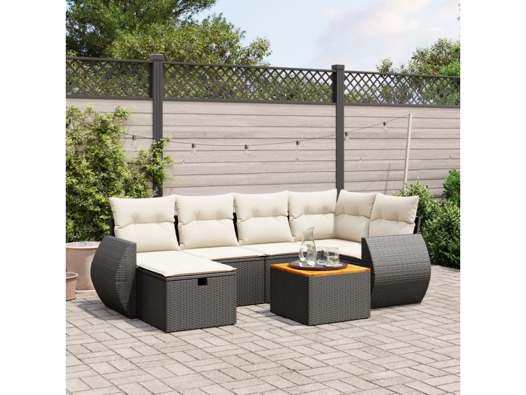 vidaXL 7-dielna záhradná súprava pohoviek s vankúšmi čierna polyratan