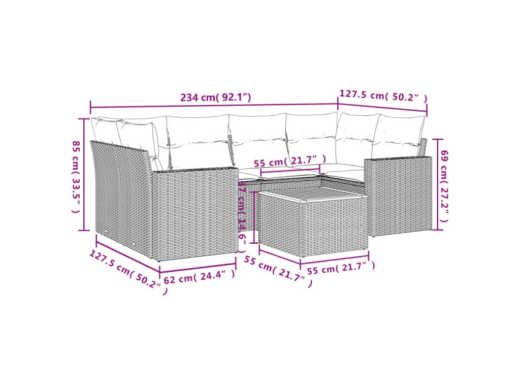 vidaXL 7-dielna záhradná súprava pohoviek s vankúšmi čierna polyratan