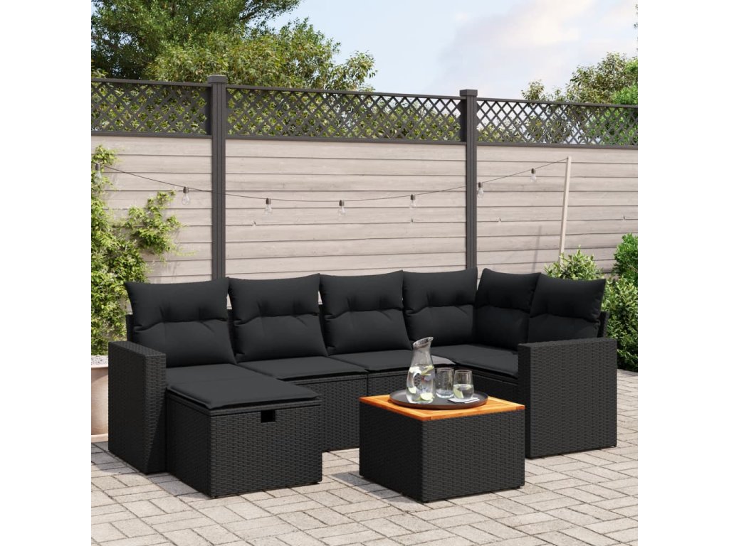 vidaXL 7-dielna záhradná súprava pohoviek s vankúšmi čierna polyratan