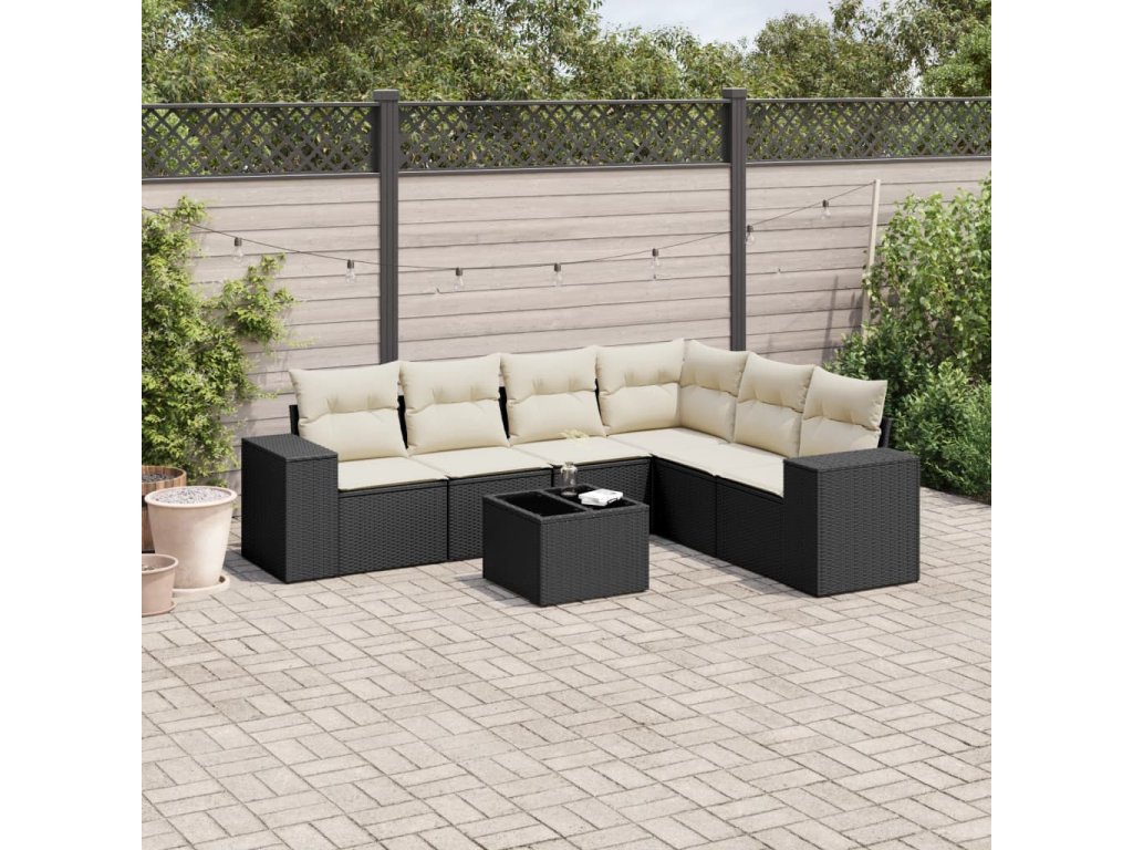 vidaXL 7-dielna záhradná súprava pohoviek s vankúšmi čierna polyratan