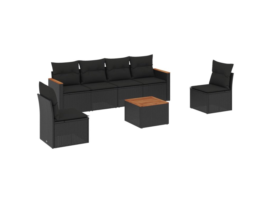 vidaXL 7-dielna záhradná súprava pohoviek s vankúšmi čierna polyratan