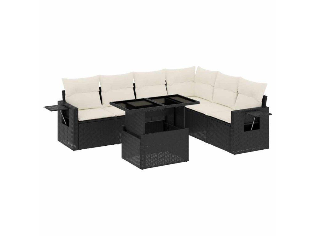 vidaXL 7-dielna záhradná súprava pohoviek s vankúšmi čierna polyratan