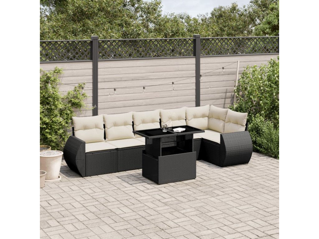 vidaXL 7-dielna záhradná súprava pohoviek s vankúšmi čierna polyratan
