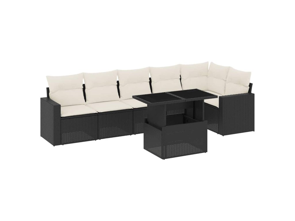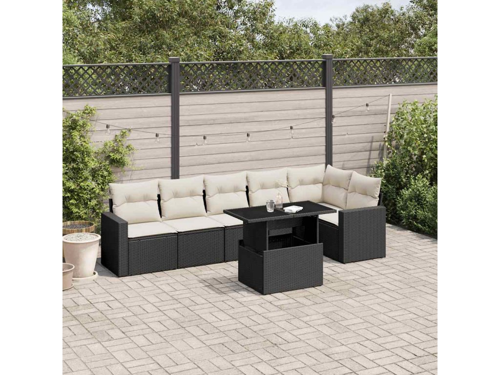 vidaXL 7-dielna záhradná súprava pohoviek s vankúšmi čierna polyratan