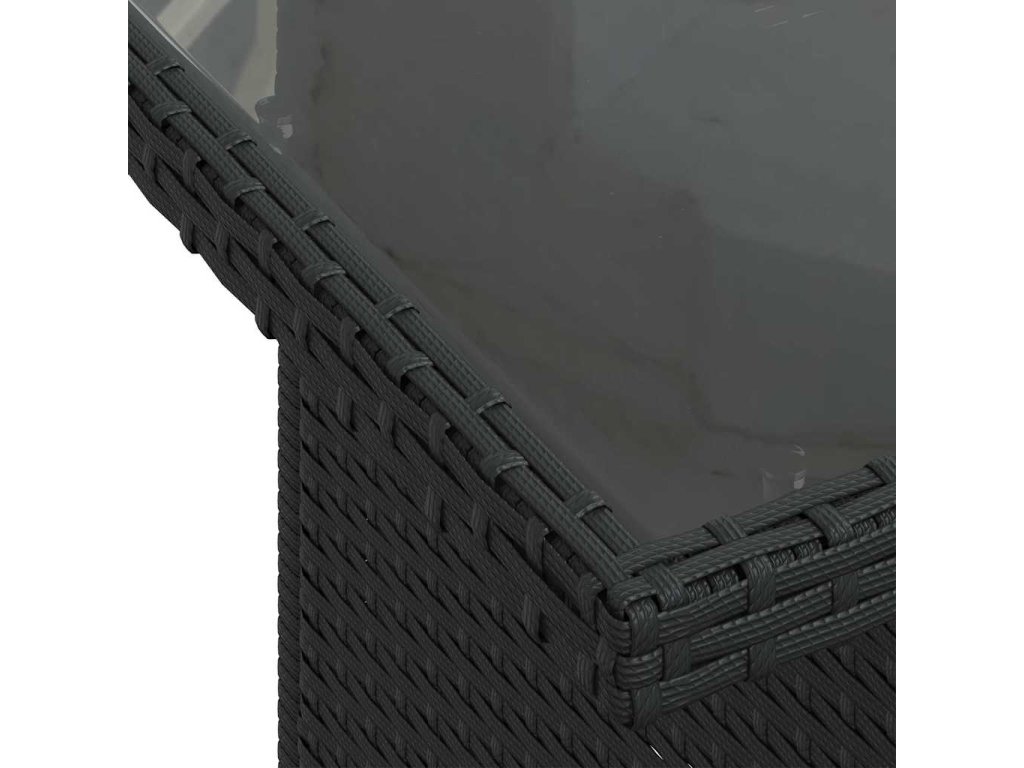 - Materiál: PE ratan, oceľ s práškovou povrchovou úpravou, tvrdené sklo