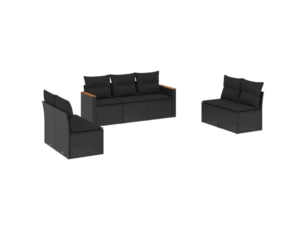 vidaXL 7-dielna záhradná súprava pohoviek s vankúšmi čierna polyratan