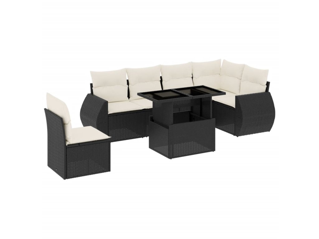 vidaXL 7-dielna záhradná súprava pohoviek s vankúšmi čierna polyratan