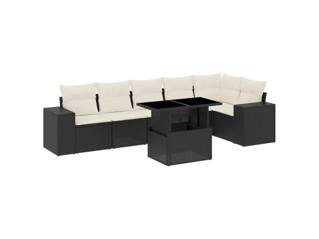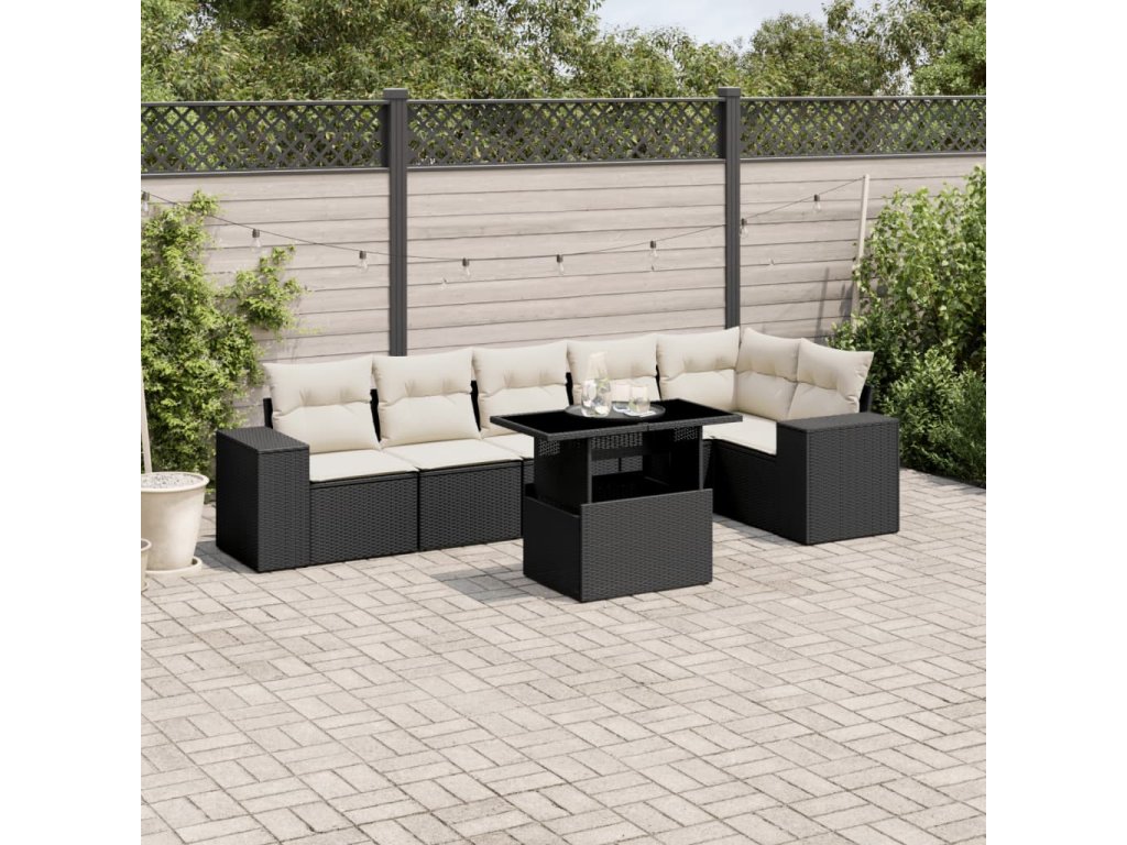 vidaXL 7-dielna záhradná súprava pohoviek s vankúšmi čierna polyratan