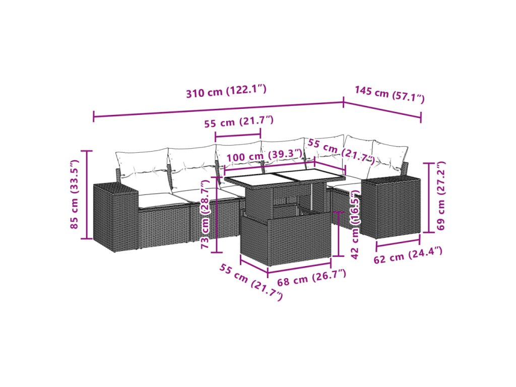 - Modulárny dizajn: Táto súprava vonkajšieho nábytku má modulárny dizajn, vďaka čomu je úplne flexibilná a ľahko sa premiestňuje, takže si svoj vonkajší nábytok budete môcť usporiadať podľa potreby.