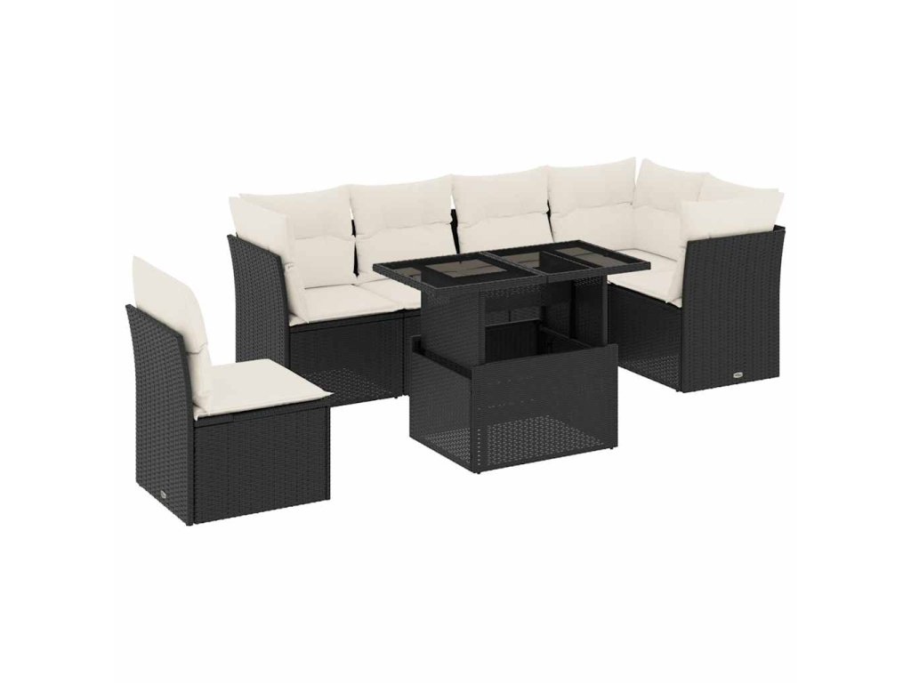 vidaXL 7-dielna záhradná súprava pohoviek s vankúšmi čierna polyratan