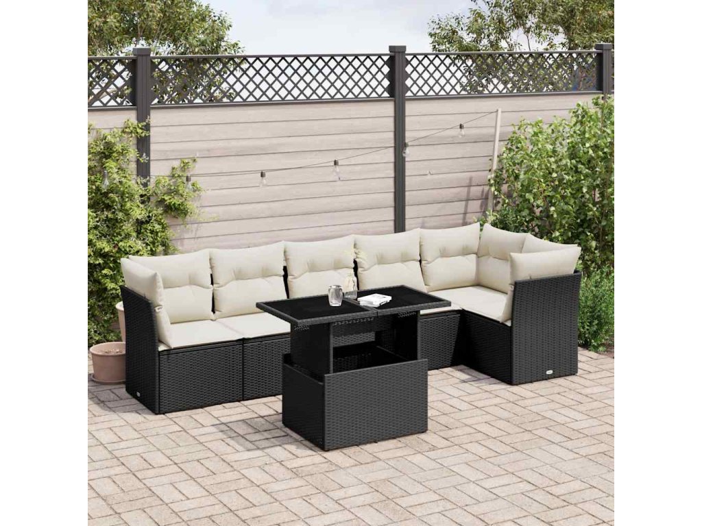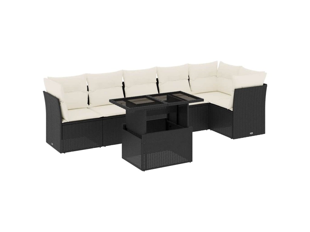 vidaXL 7-dielna záhradná súprava pohoviek s vankúšmi čierna polyratan