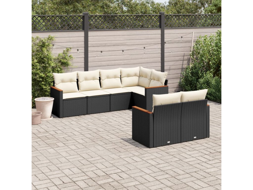 vidaXL 7-dielna záhradná súprava pohoviek s vankúšmi čierna polyratan