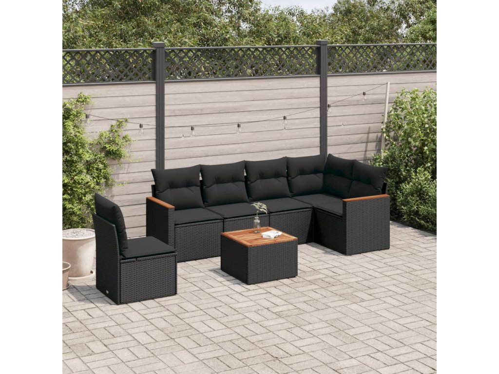 vidaXL 7-dielna záhradná súprava pohoviek s vankúšmi čierna polyratan