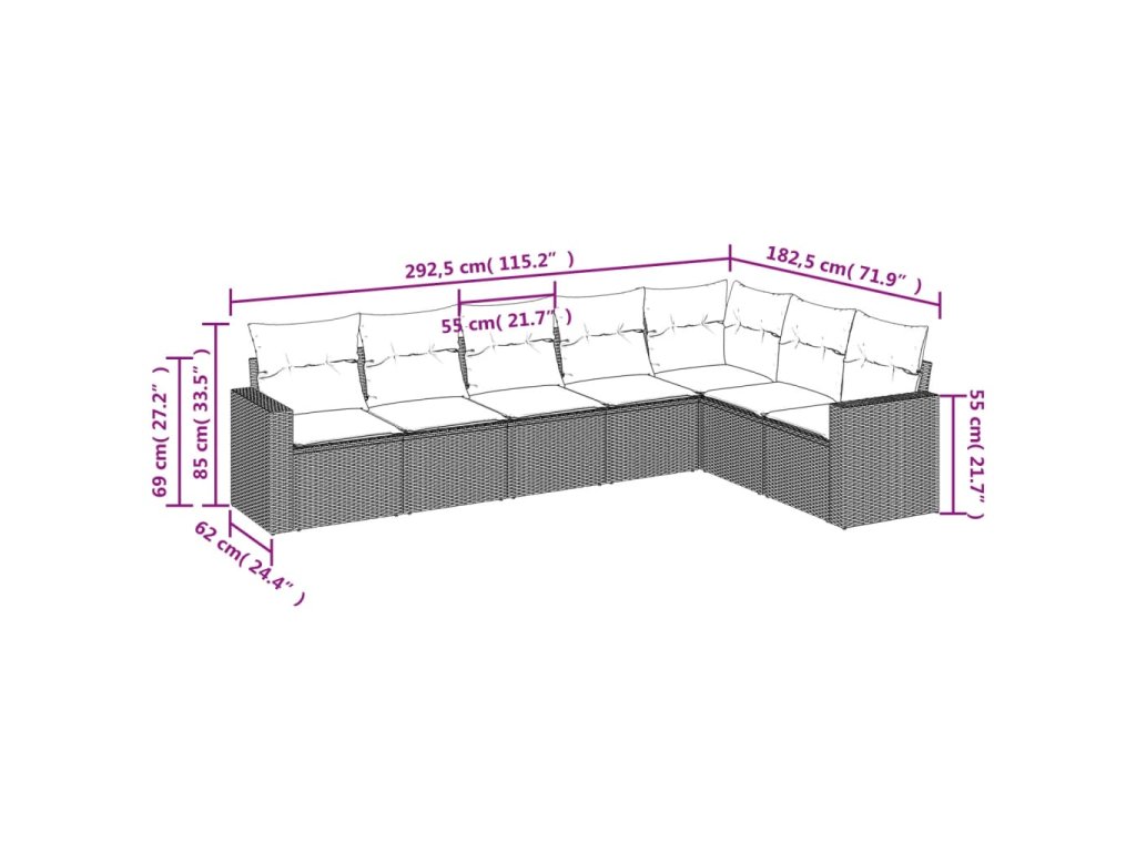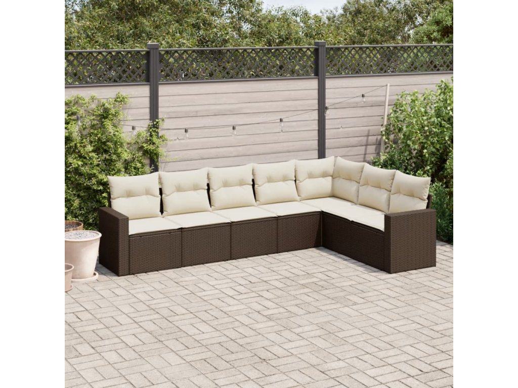 vidaXL 7-dielna záhradná súprava pohoviek s vankúšmi hnedá polyratan