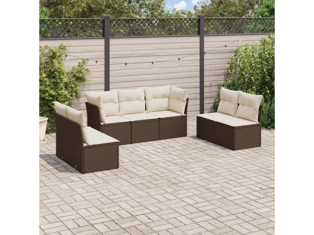 vidaXL 7-dielna záhradná súprava pohoviek s vankúšmi hnedá polyratan