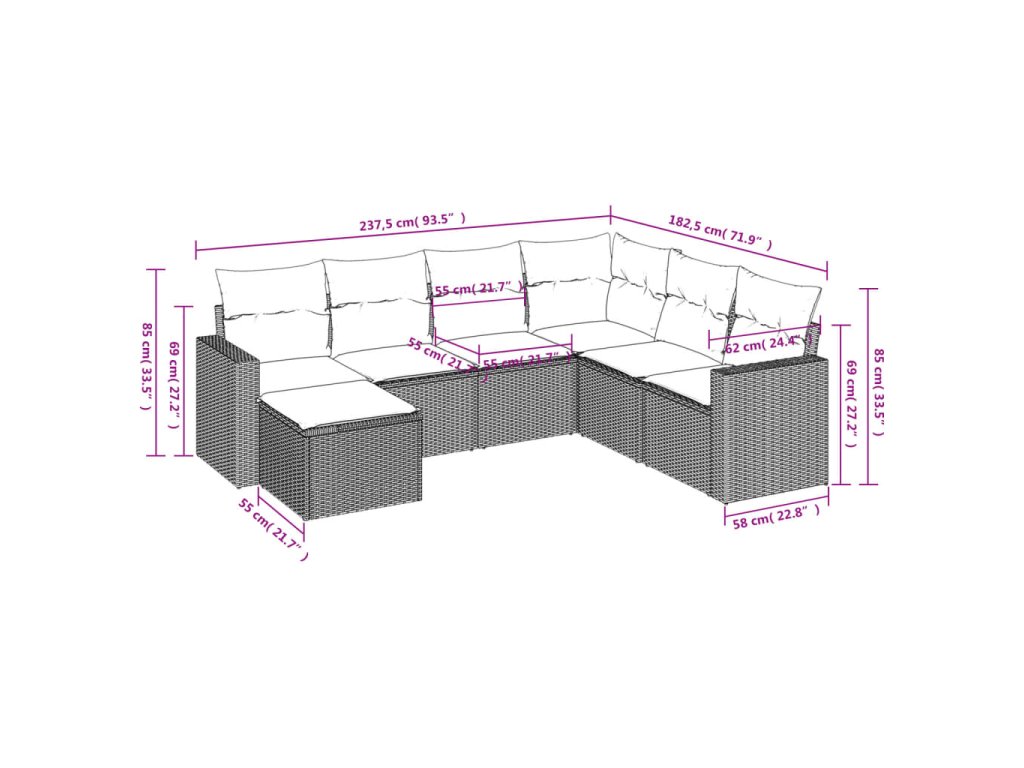 vidaXL 7-dielna záhradná súprava pohoviek s vankúšmi hnedá polyratan
