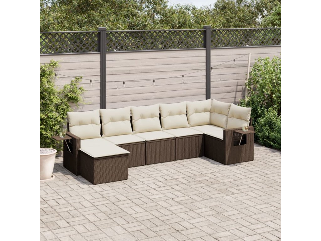 vidaXL 7-dielna záhradná súprava pohoviek s vankúšmi hnedá polyratan