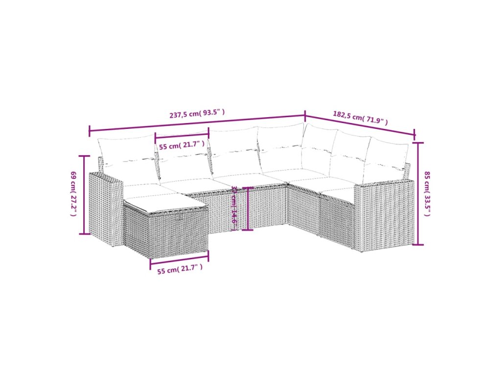 vidaXL 7-dielna záhradná súprava pohoviek s vankúšmi hnedá polyratan