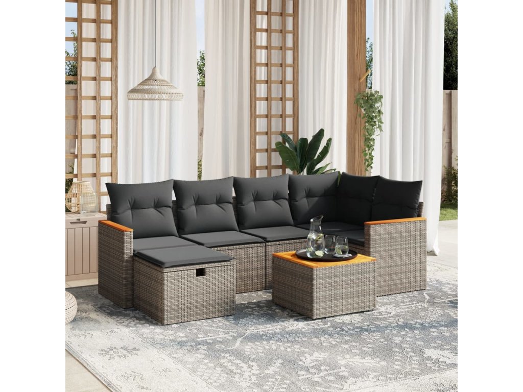 vidaXL 7-dielna záhradná súprava pohoviek s vankúšmi sivá polyratanová