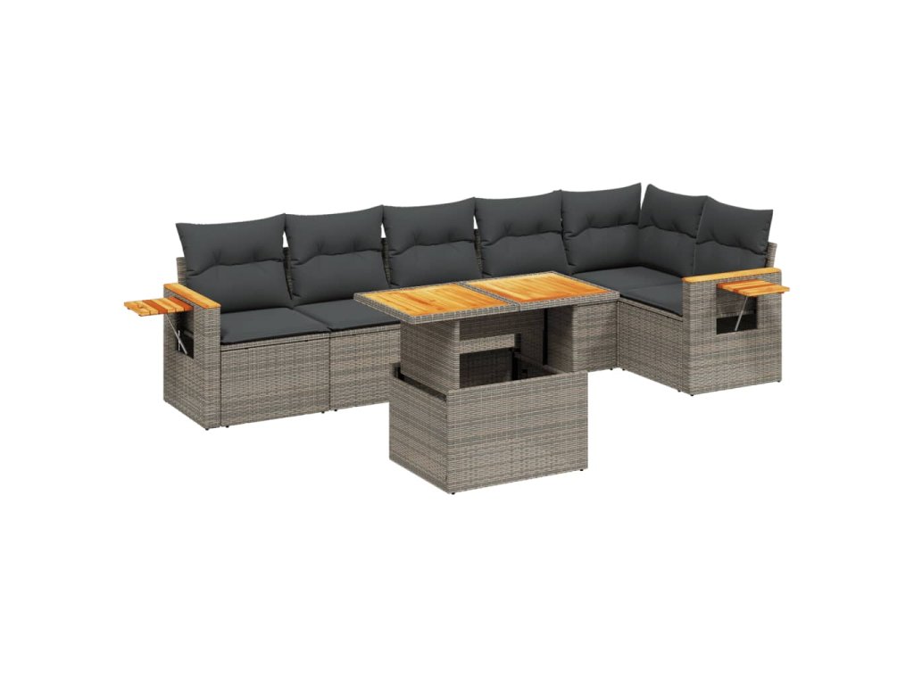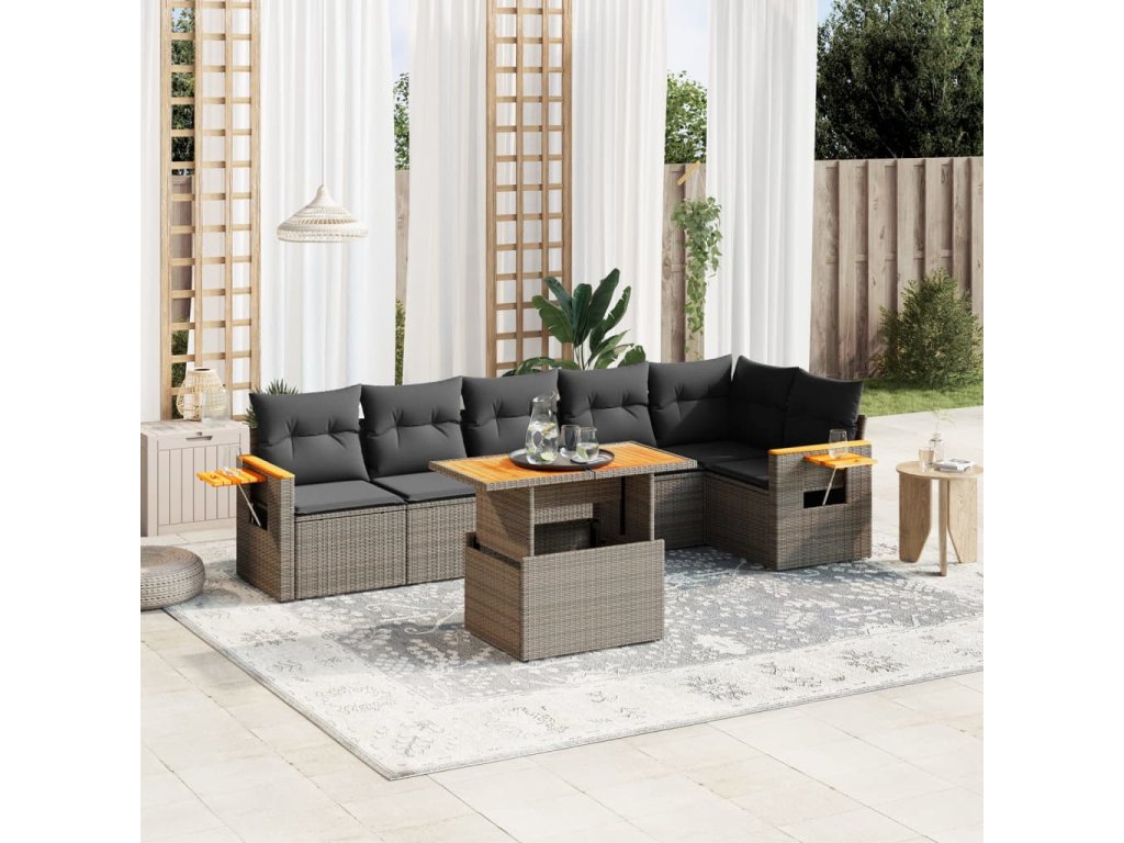 vidaXL 7-dielna záhradná súprava pohoviek s vankúšmi sivá polyratanová