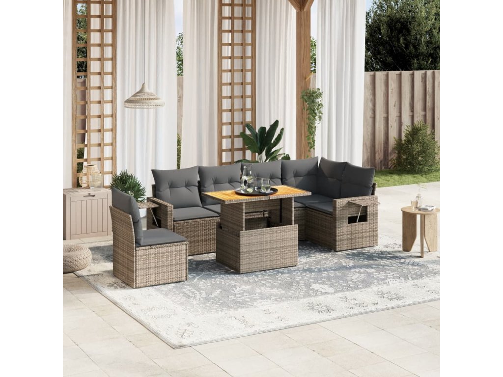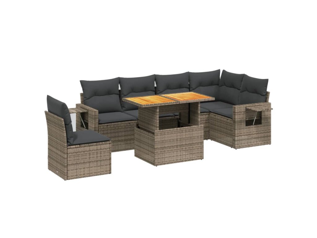 vidaXL 7-dielna záhradná súprava pohoviek s vankúšmi sivá polyratanová