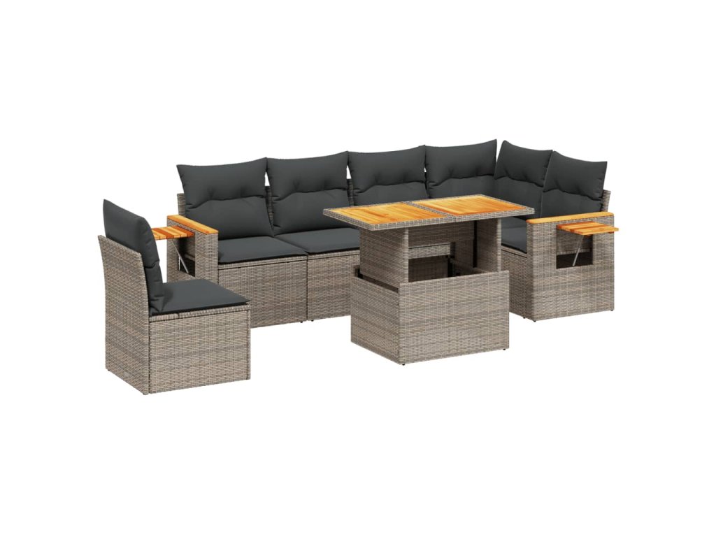 vidaXL 7-dielna záhradná súprava pohoviek s vankúšmi sivá polyratanová