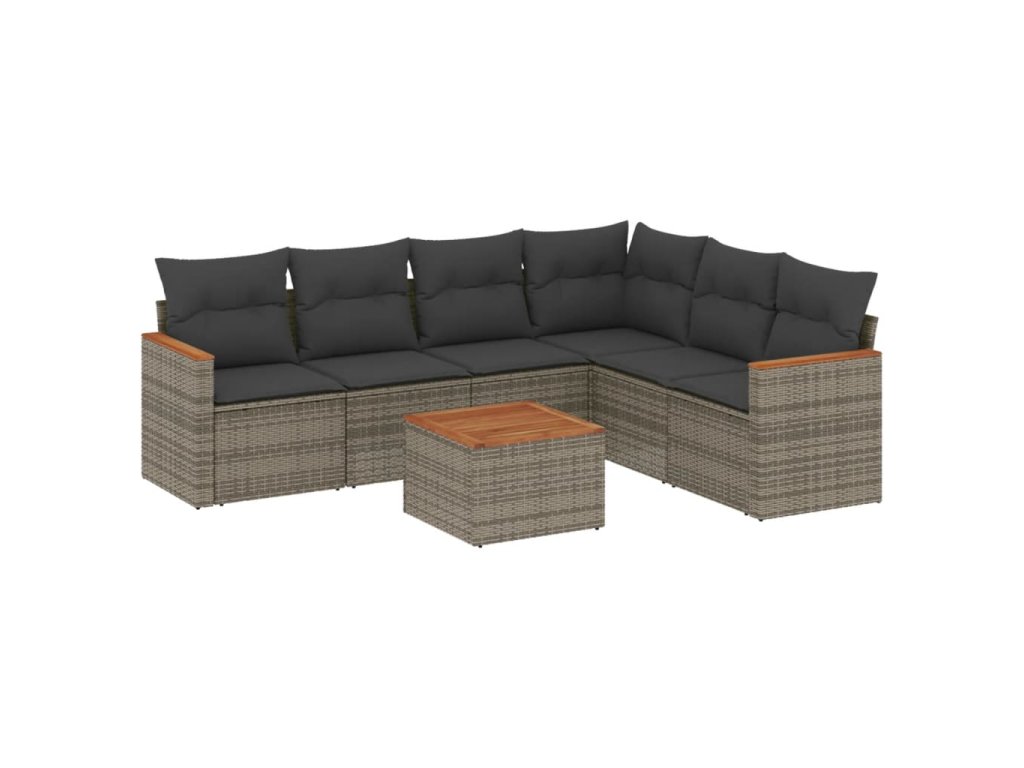 vidaXL 7-dielna záhradná súprava pohoviek s vankúšmi sivá polyratanová