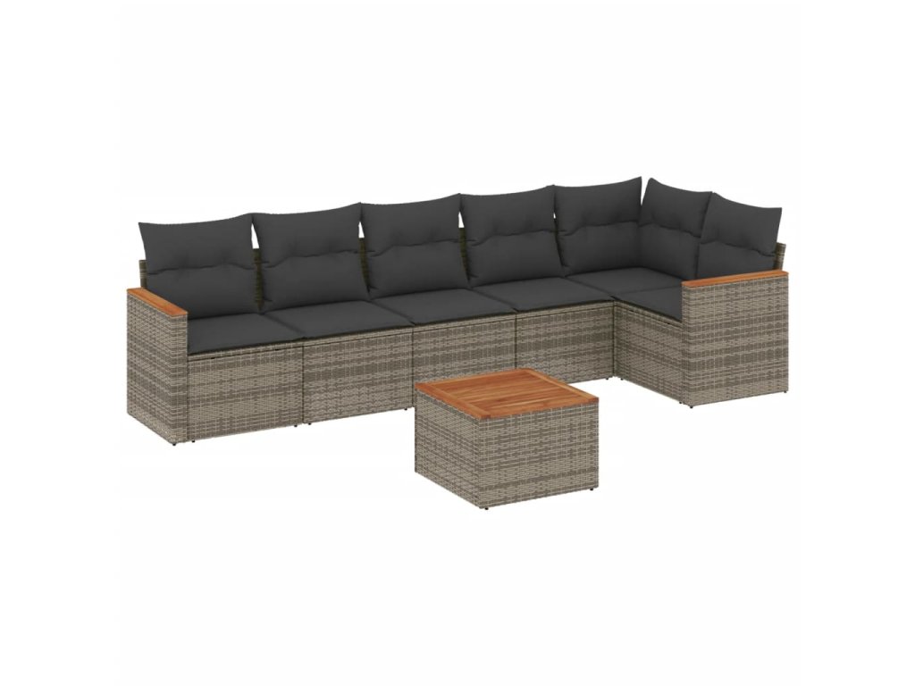 vidaXL 7-dielna záhradná súprava pohoviek s vankúšmi sivá polyratanová