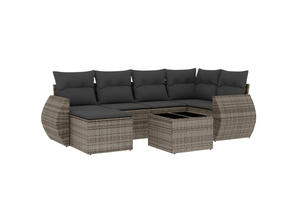 vidaXL 7-dielna záhradná súprava pohoviek s vankúšmi sivá polyratanová