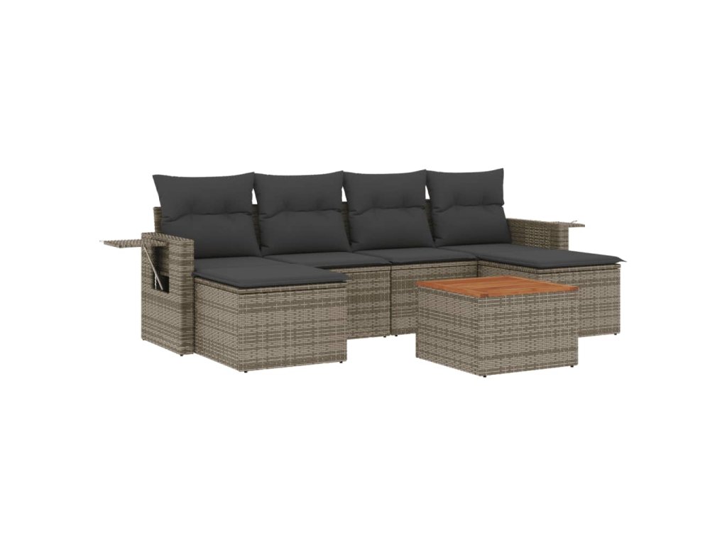 vidaXL 7-dielna záhradná súprava pohoviek s vankúšmi sivá polyratanová