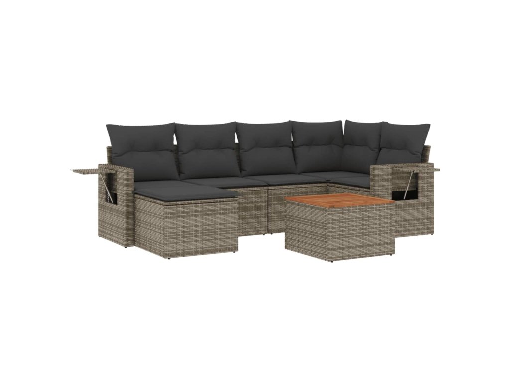 vidaXL 7-dielna záhradná súprava pohoviek s vankúšmi sivá polyratanová