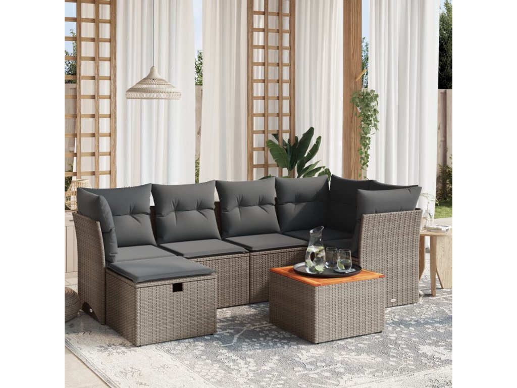 vidaXL 7-dielna záhradná súprava pohoviek s vankúšmi sivá polyratanová
