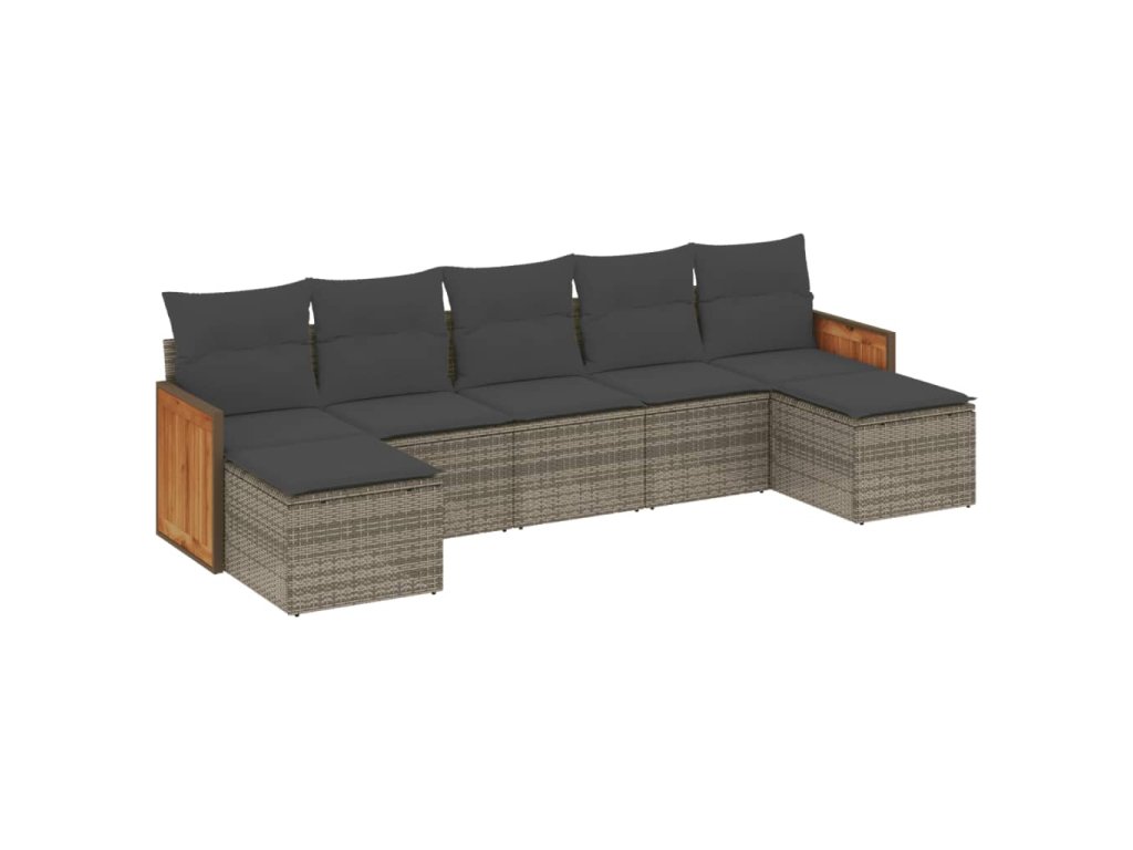 vidaXL 7-dielna záhradná súprava pohoviek s vankúšmi sivá polyratanová