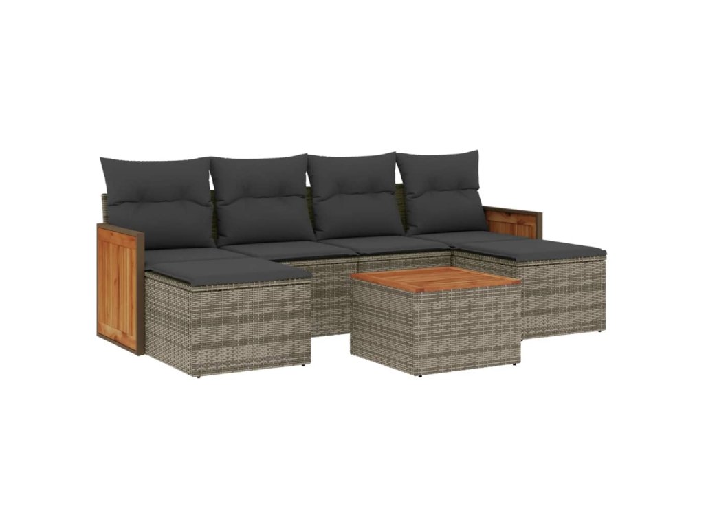 vidaXL 7-dielna záhradná súprava pohoviek s vankúšmi sivá polyratanová