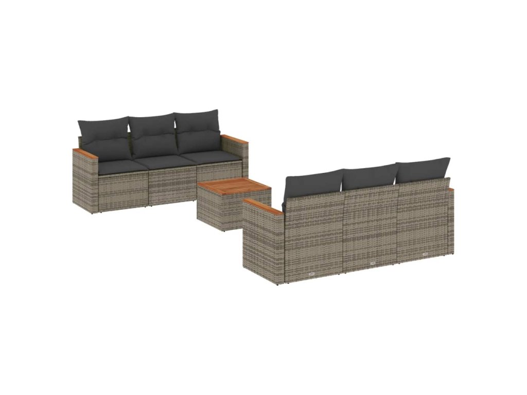 vidaXL 7-dielna záhradná súprava pohoviek s vankúšmi sivá polyratanová