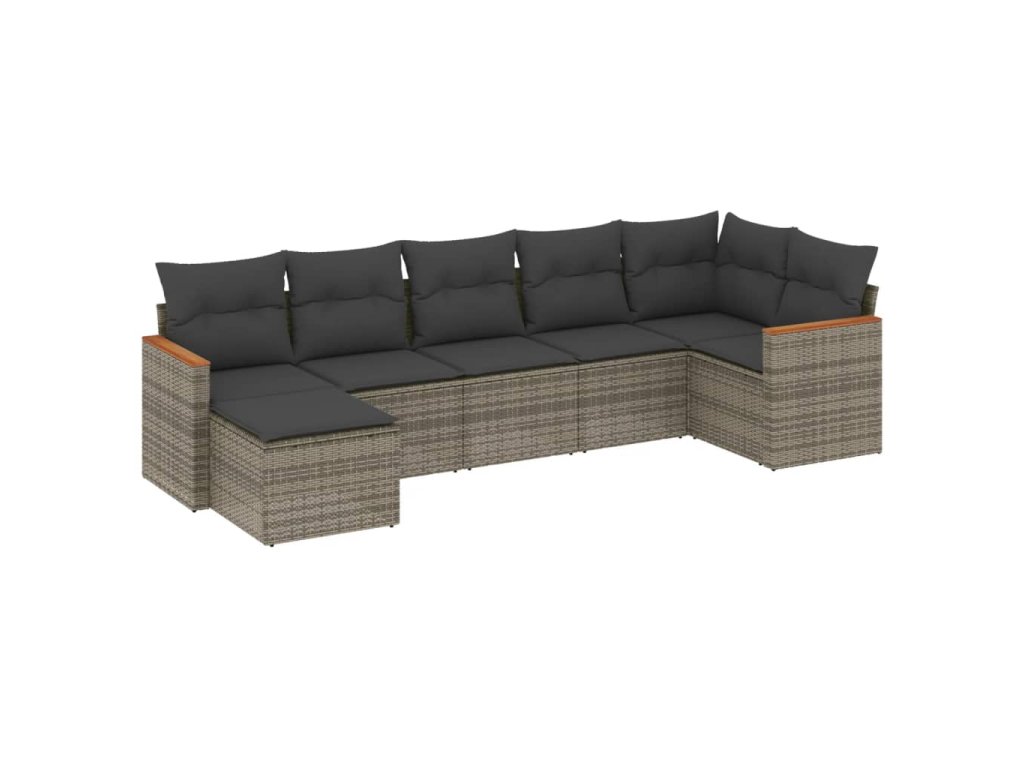vidaXL 7-dielna záhradná súprava pohoviek s vankúšmi sivá polyratanová