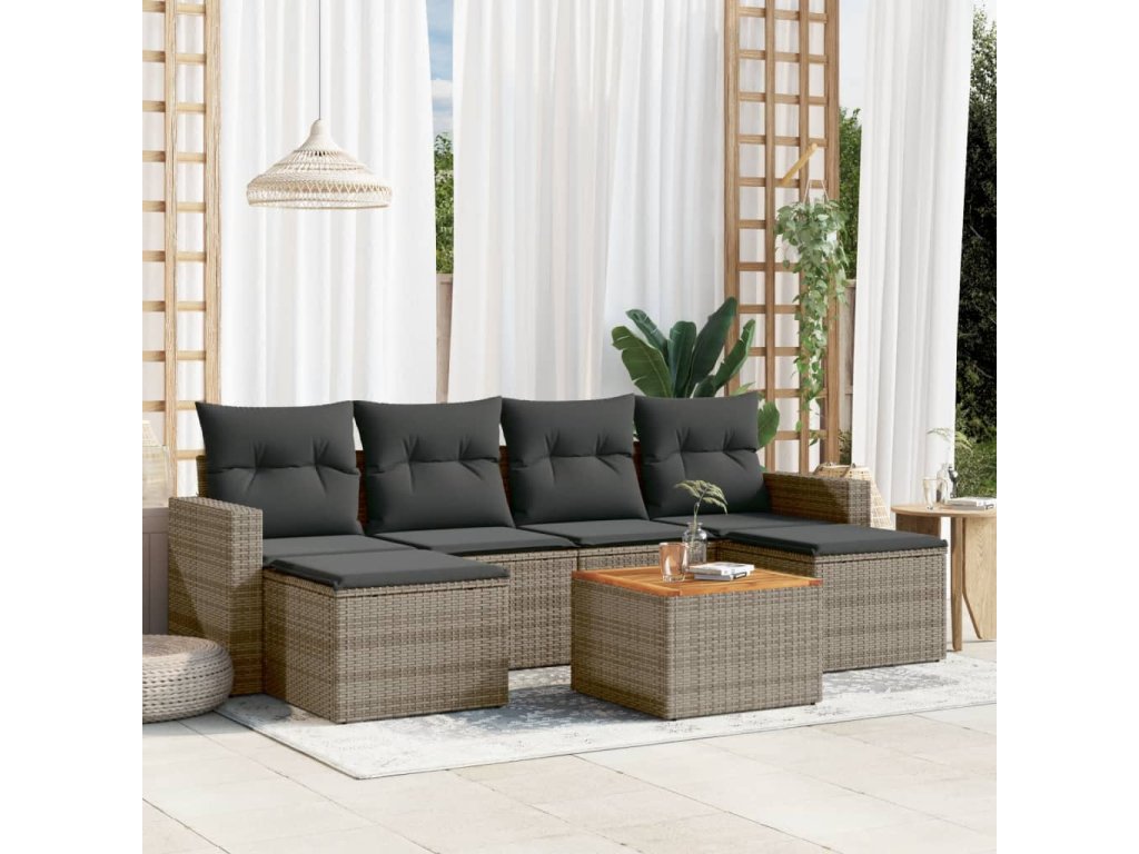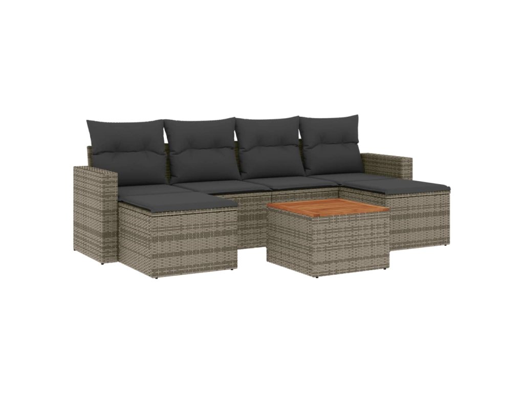 vidaXL 7-dielna záhradná súprava pohoviek s vankúšmi sivá polyratanová