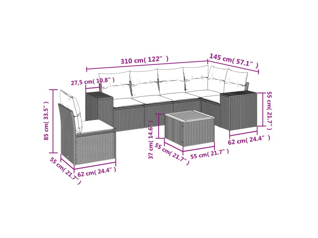 vidaXL 7-dielna záhradná súprava pohoviek s vankúšmi sivá polyratanová
