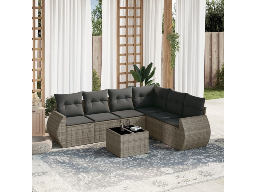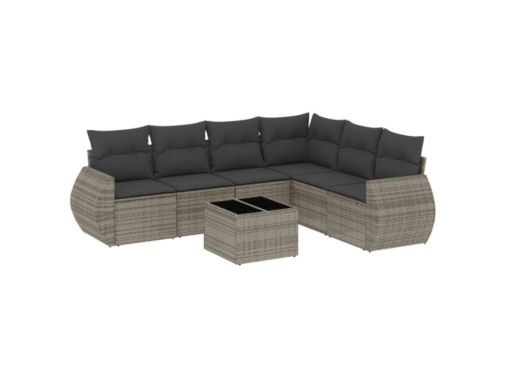 vidaXL 7-dielna záhradná súprava pohoviek s vankúšmi sivá polyratanová