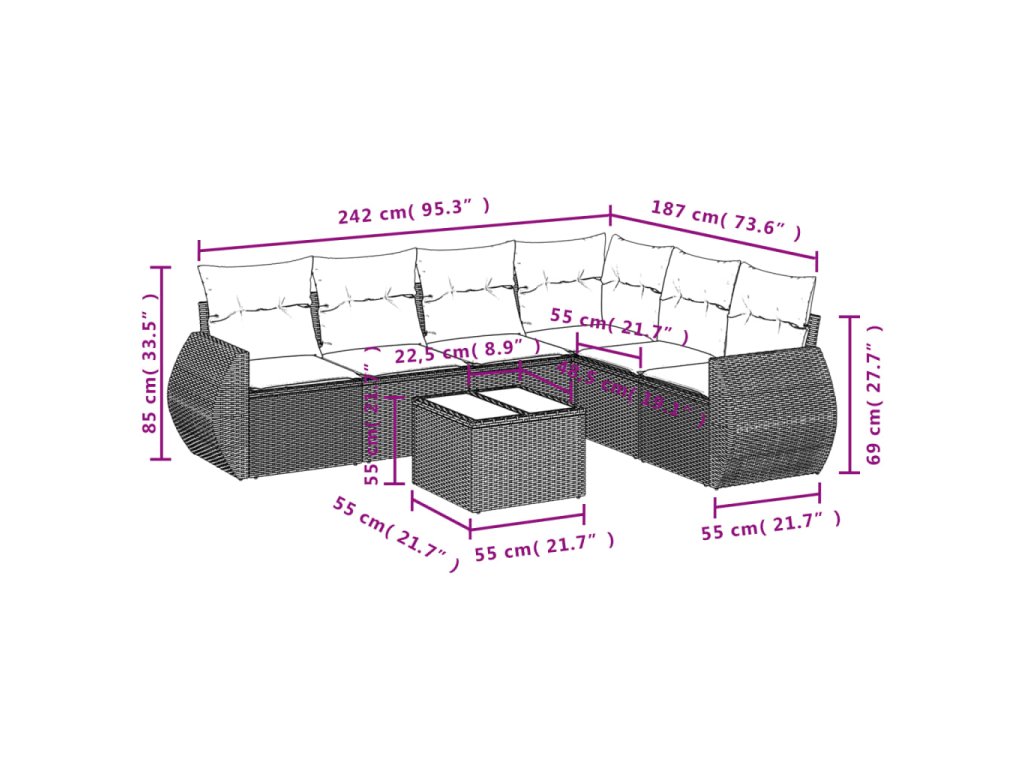 - Modulárny dizajn: Táto súprava vonkajšieho nábytku má modulárny dizajn, vďaka čomu je úplne flexibilná a ľahko sa premiestňuje, takže si môžete vytvoriť prispôsobené usporiadanie vonkajšieho nábytku.
