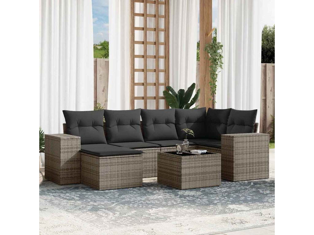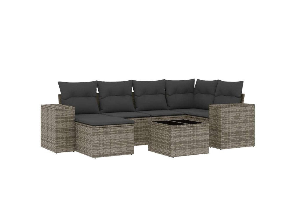 vidaXL 7-dielna záhradná súprava pohoviek s vankúšmi sivá polyratanová