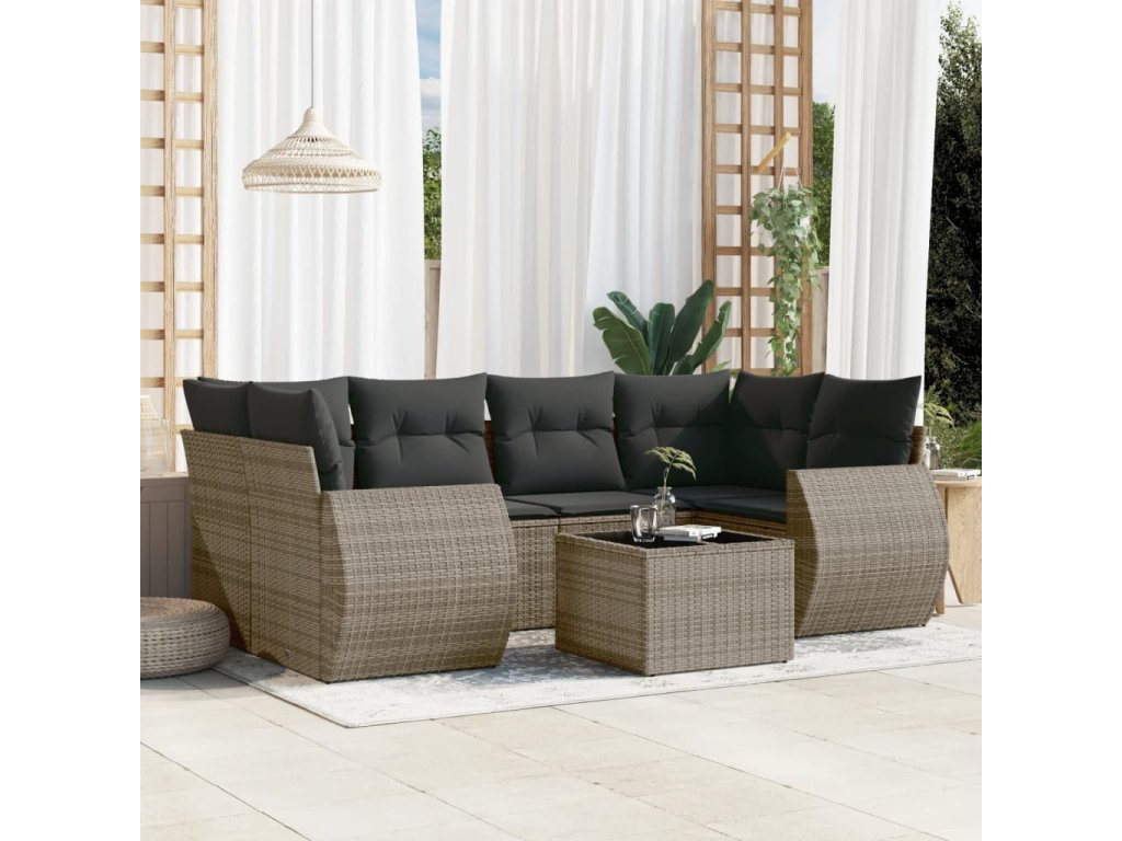 vidaXL 7-dielna záhradná súprava pohoviek s vankúšmi sivá polyratanová
