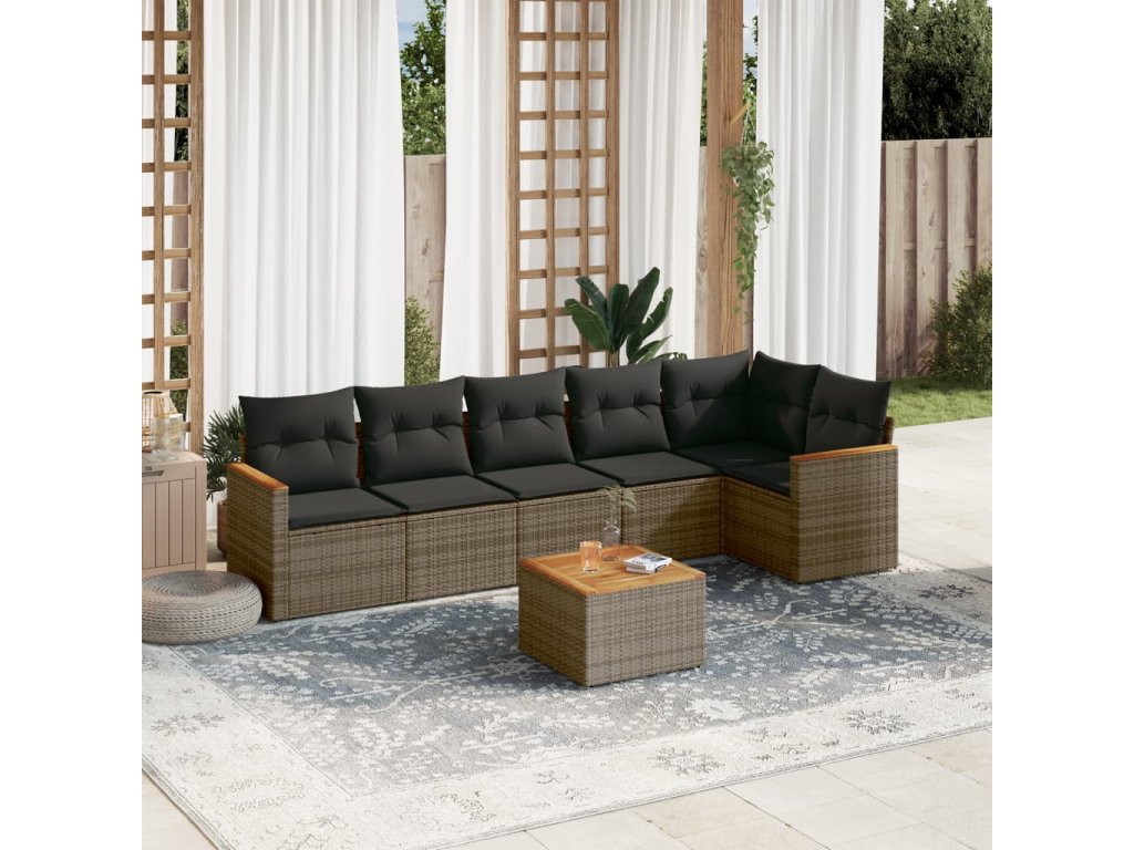 vidaXL 7-dielna záhradná súprava pohoviek s vankúšmi sivá polyratanová